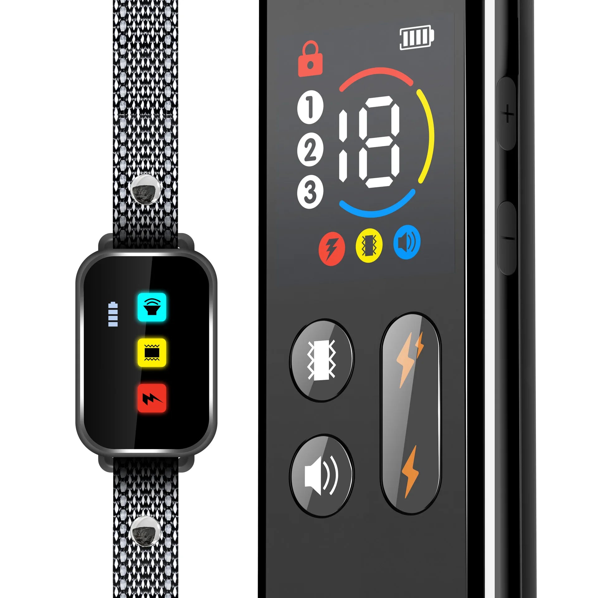 Train your dog safely and effectively with this smart electronic collar featuring HD color screen remote control, vibration, and shock modes. The IP67 waterproof receiver ensures durability in all conditions, while the eco-friendly design offers modern style and reliable training support. Perfect for daily use in all seasons for dogs of different breeds and sizes.